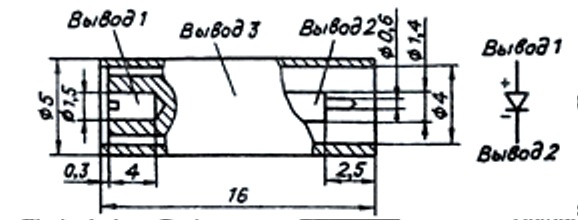 Тип диода и схема соединения электродов с выводами приводятся на корпусе.