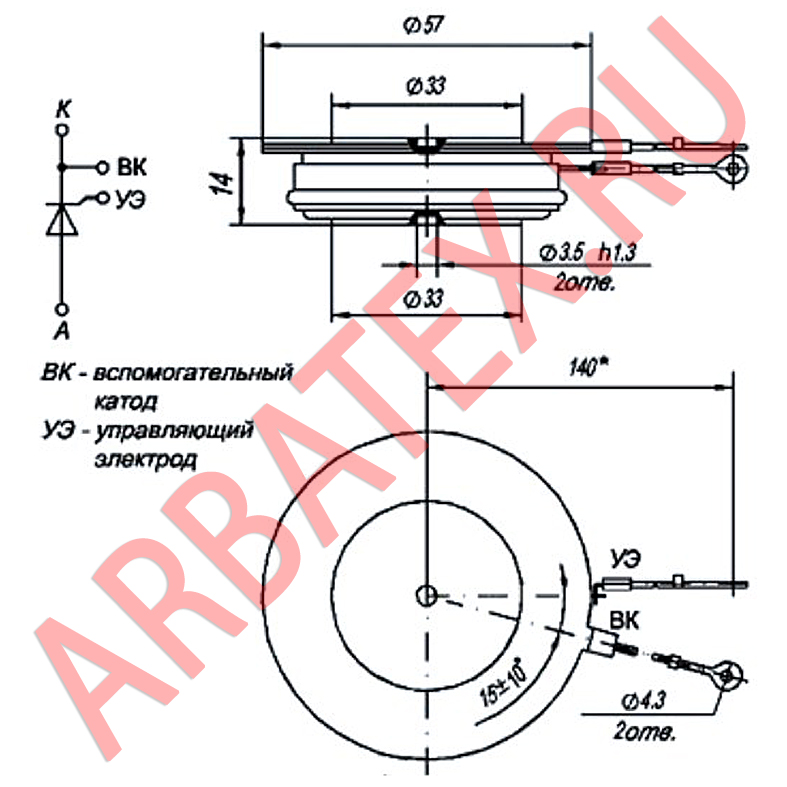Масса тиристора не более 160 г.
